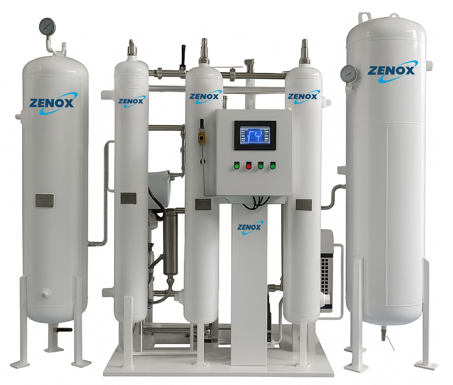 Conventional PSA systems have limitations such as fixed input and output capacities. In contrast, the Zenox Scalable Supersaver (SS) offers a unique advantage - scalability with energy efficiency. This model delivers up to 25% power savings and allows flowrate expansion with minimal additions. For instance, the SS-60 model, equipped with a 4-kW compressor, produces 57 LPM. By simply adding another compressor and dryer, the flowrate can be doubled. The system intelligently activates additional units based on hospital demand, ensuring optimal energy use while meeting varying oxygen needs. Scalable PSA is patented technology.